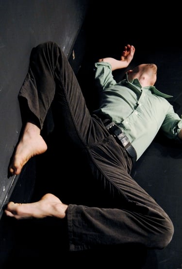 The sense of proprioception, or kinesthesia, allows us to have the desire to move, either voluntarily or involuntarily, and the ability to perform that movement. Additionally, feedback is then sent in return to assess the outcome, all completed in a normal reaction time. The main objective in a waiting dog dies is to expand that normal reaction time, by endlessly placing ‘somatic pauses’ in the mind and body’s communicative partnership. How long can one moment be extended? Choreographer and performer, Michael O’Connor slips between the states of action and hesitation, allowing the mind and body’s struggle to communicate flourish.