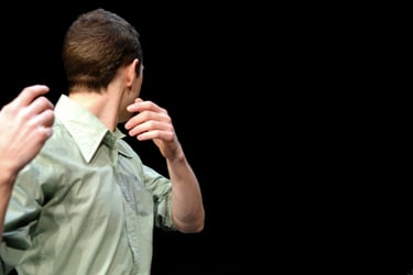 With feelings of empathy, Michael O'Connor and Radek Hewelt also work. The pieces of these two both start in a suspense creating moment of minimum action and then attain full growth as if dragging along like an anti-spectacular operational sequence. O’Connor’s solo work ‘a waiting dog dies’ captivates by its strict duck-logic and the operational readiness level of the choreographer and performer, which involves silence, nonchalant flirting with sentimentality and acts of sobering provocation.