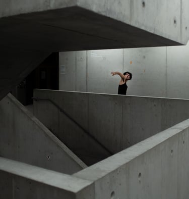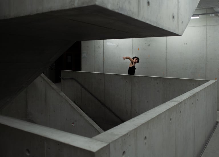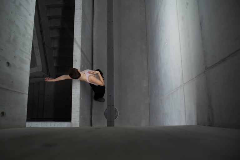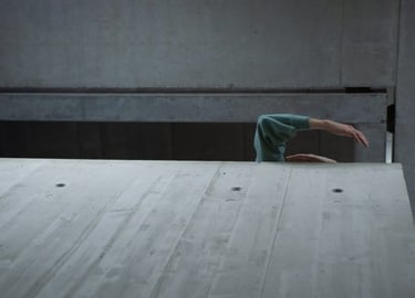 between line, camera, and architecture. Relationships are made be-tween hidden surfaces, layered objects, and moving bodies. The occluding edge is the point where things are simultaneously separated and connected. A dance of abandoned bodies.